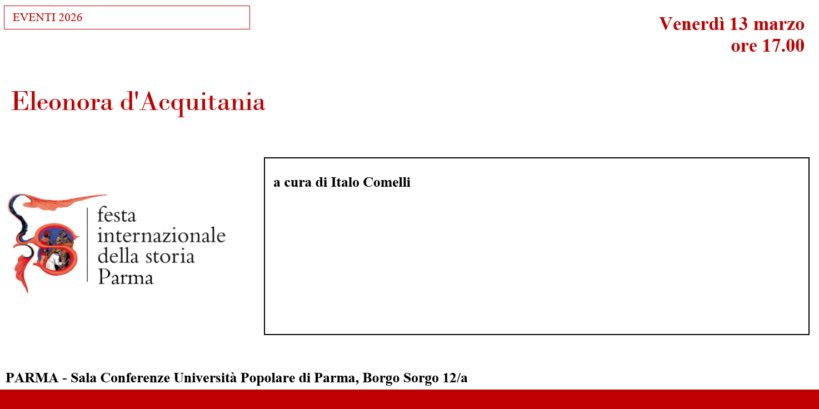 ELEONORA D’AQUITANIA a cura di ITALO COMELLI 13 MARZO ORE 17 PARMA – UNIPOP Aula conferenze B.go Sorgo 12/A