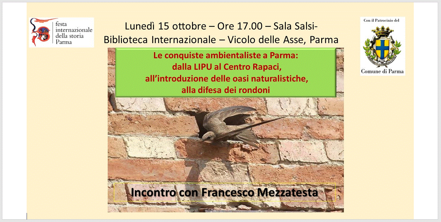 LE CONQUISTE AMBIENTALISTE A PARMA: dalla LIPU al Centro Rapaci, alla introduzione delle oasi naturalistiche, alla difesa dei rondoni.