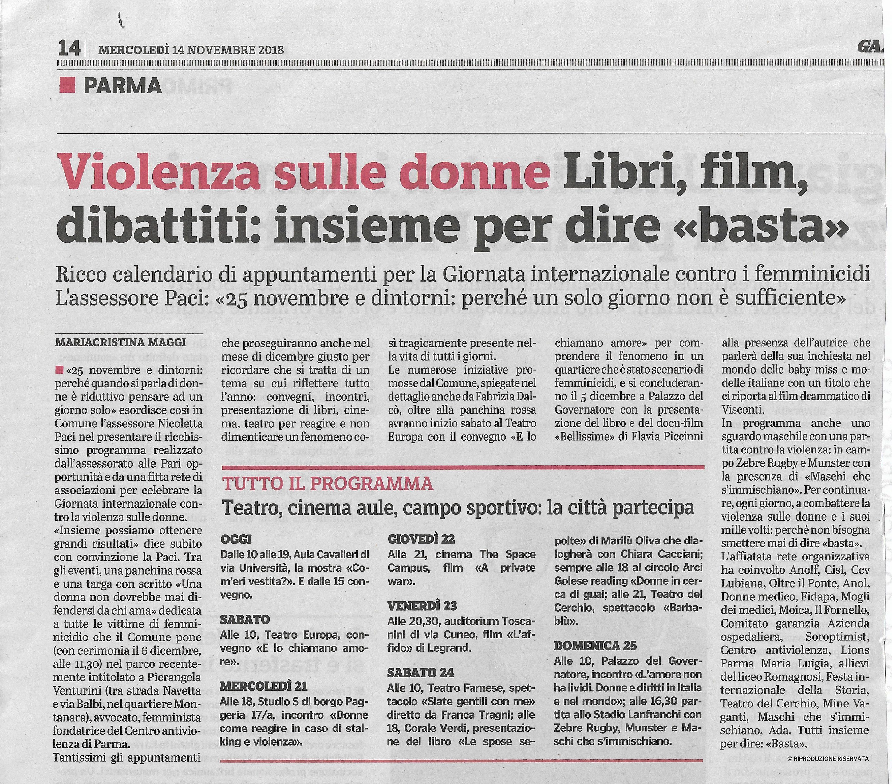 Gazzetta di Parma: Violenza sulle donne. Libri, film, dibattiti: insieme per dire “basta” Continua a leggere