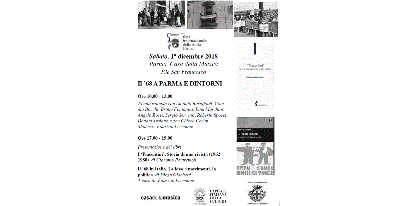 Parma, Casa della Musica, P.le San Francesco Ore 10.00 – 13.00 Tavola rotonda con Antonio Baruffaldi, Claudio Bocchi, Chicco Corini, Bruno Fontanesi, Lina Marchini, Angelo Rossi, Sergio Serventi, Roberto Spocci, Donato Troiano. Modera: Fabrizio Leccabue Ore 17.00 – 19.00 Presentazione