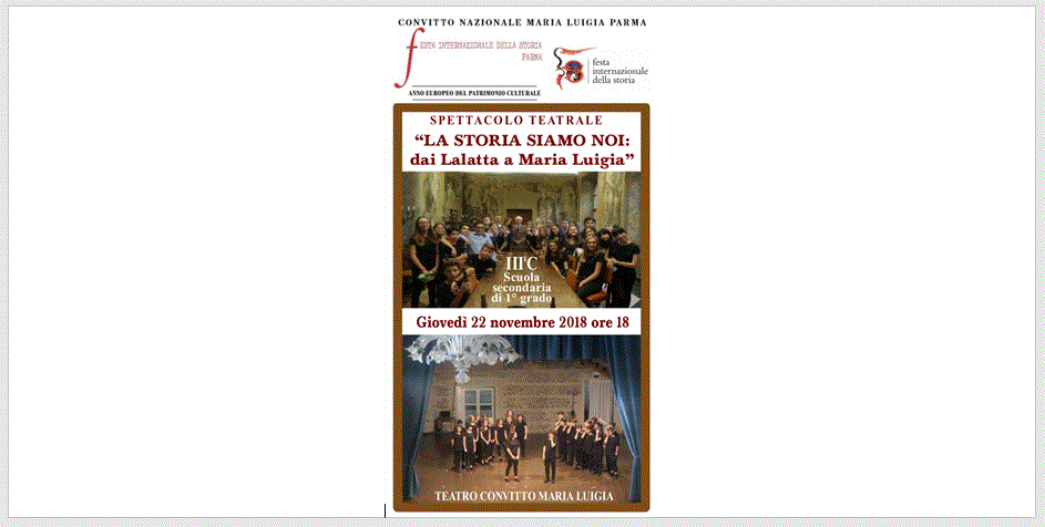 Parma, Teatro del Convitto Maria Luigia Borgo Lalatta 14 Spettacolo a cura di Alessandra Ghinelli, Scuola Media Maria Luigia Prenotazioni: 3393636689