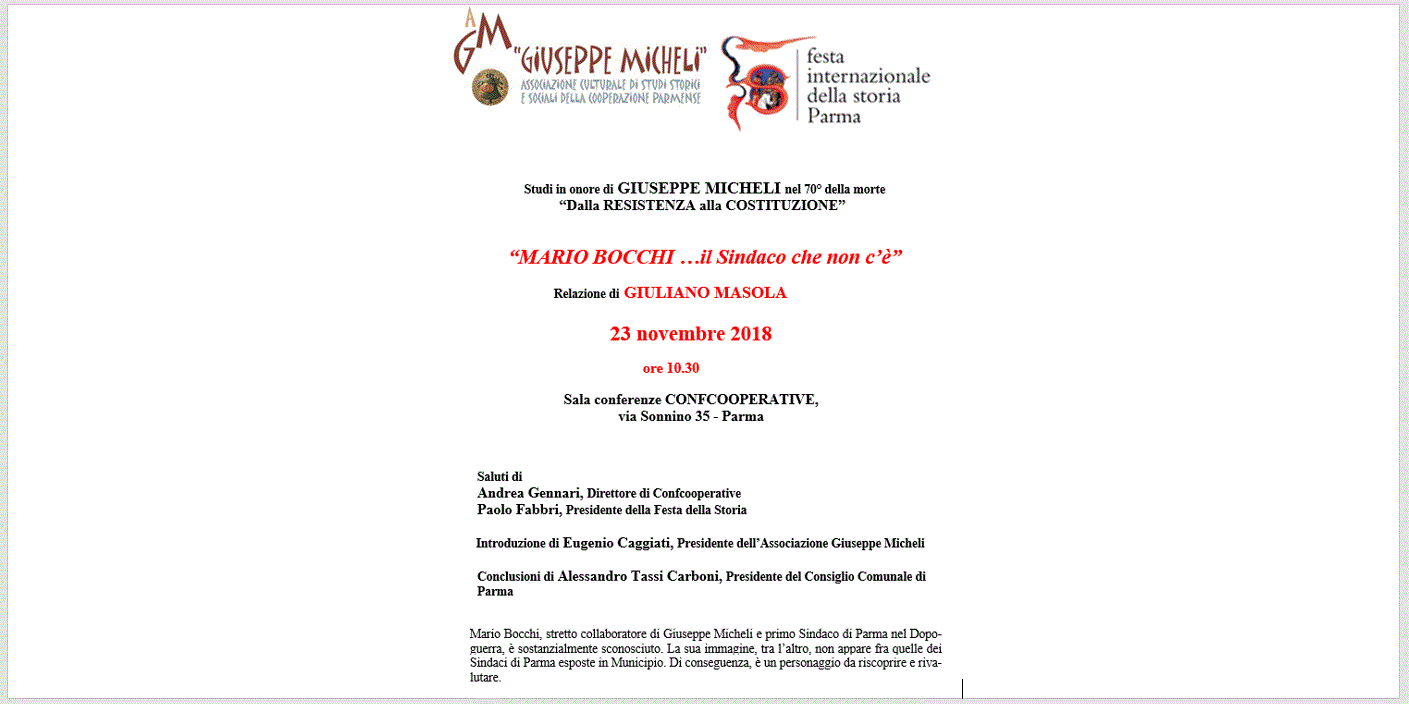 Parma, Confcooperative Via Sonnino 35 Relazione di Giuliano Masola