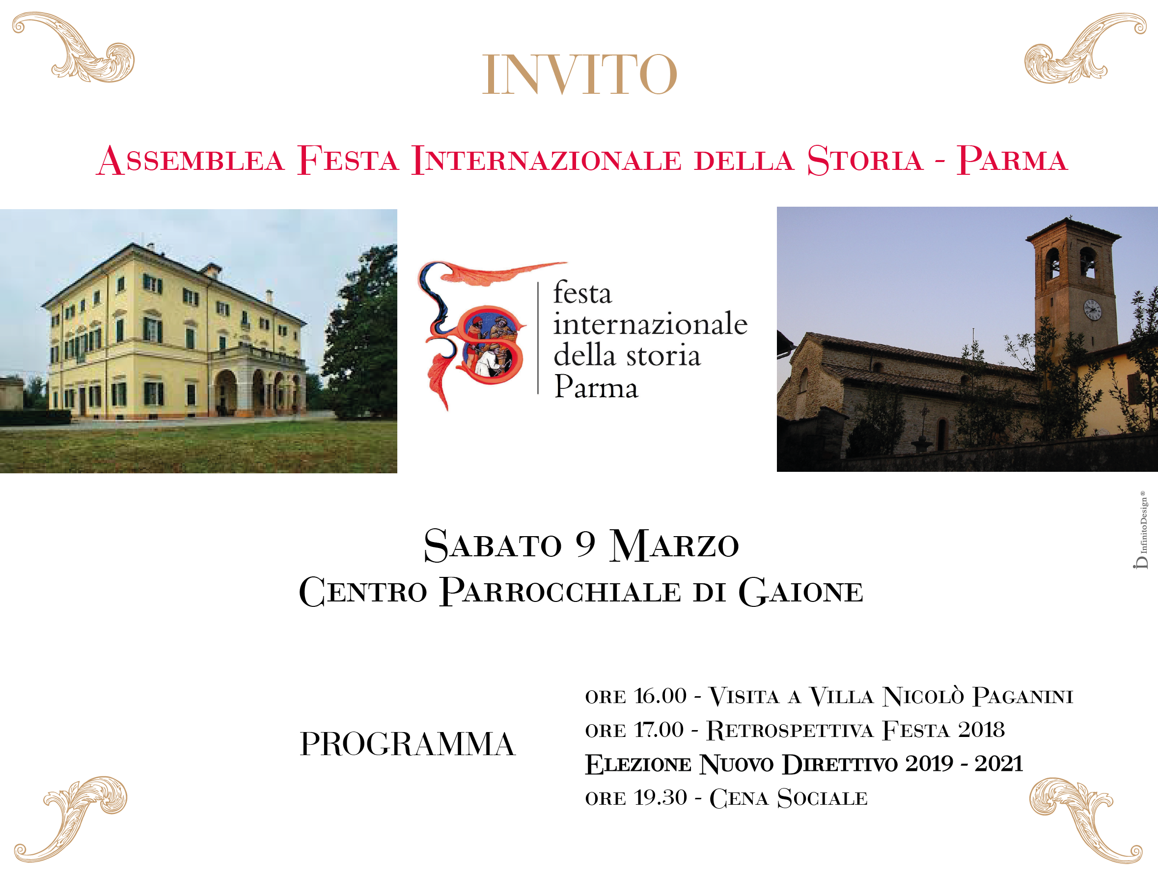 Cari amici della Festa della Storia, siamo lieti di invitarvi il 9 marzo al Centro parrocchiale di Gaione per rivivere i momenti più significativi della Festa 2018 e per partecipare all’elezione del nuovo Direttivo della nostra associazione, che resterà in carica nel triennio