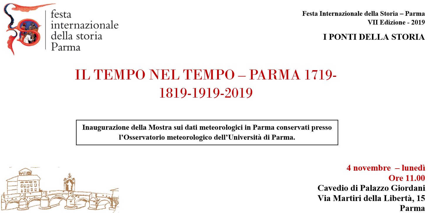 Inaugurazione della Mostra sui dati meteorologici in Parma conservati presso l’Osservatorio meteorologico dell’Università di Parma. Oltre 300 anni di dati scientifici, che permettono di leggere la storia anche dal punto di vista del tempo atmosferico