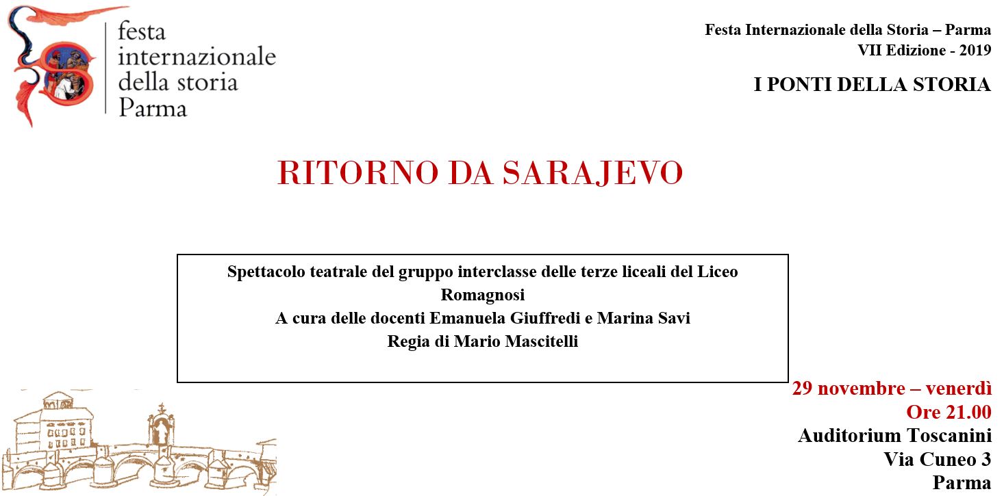Spettacolo teatrale del gruppo interclasse delle terze liceali del Liceo Romagnosi Acura delle docenti Emanuela Giuffredi e Marina Savi Regia di Mario Mascitelli 29 novembre – venerdì Ore 21.00 Auditorium Toscanini Via Cuneo 3Parma