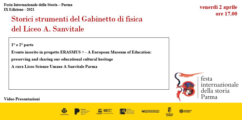 Evento inserito in progetto ERASMUS + – A European Museum of Education: preserving and sharing our educational cultural heritage A cura Liceo Scienze Umane A Sanvitale Parma Nell’impossibilità di partecipare di persona gli studenti hanno pensato di creare questi video
