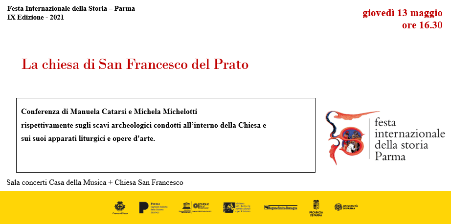 giovedì 13maggio ore 16.30 sede di svolgimento: Sala concerti Casa della Musica e Chiesa SanFrancesco Conferenza di Manuela Catarsi e Michela Michelotti rispettivamente sugli scavi archeologici condotti all’interno della Chiesa e sui suoi apparati liturgici e opere d’arte. informazioni di