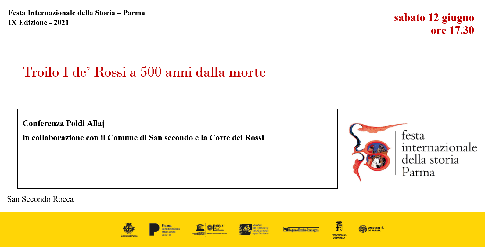 Familiae Rosciae propagator et restaurator Ricordando Troilo I de’ Rossi, cinquecento anni dopo Conferenza di Pier Luigi Poldi Allaj ingresso gratuito LOCANDINA