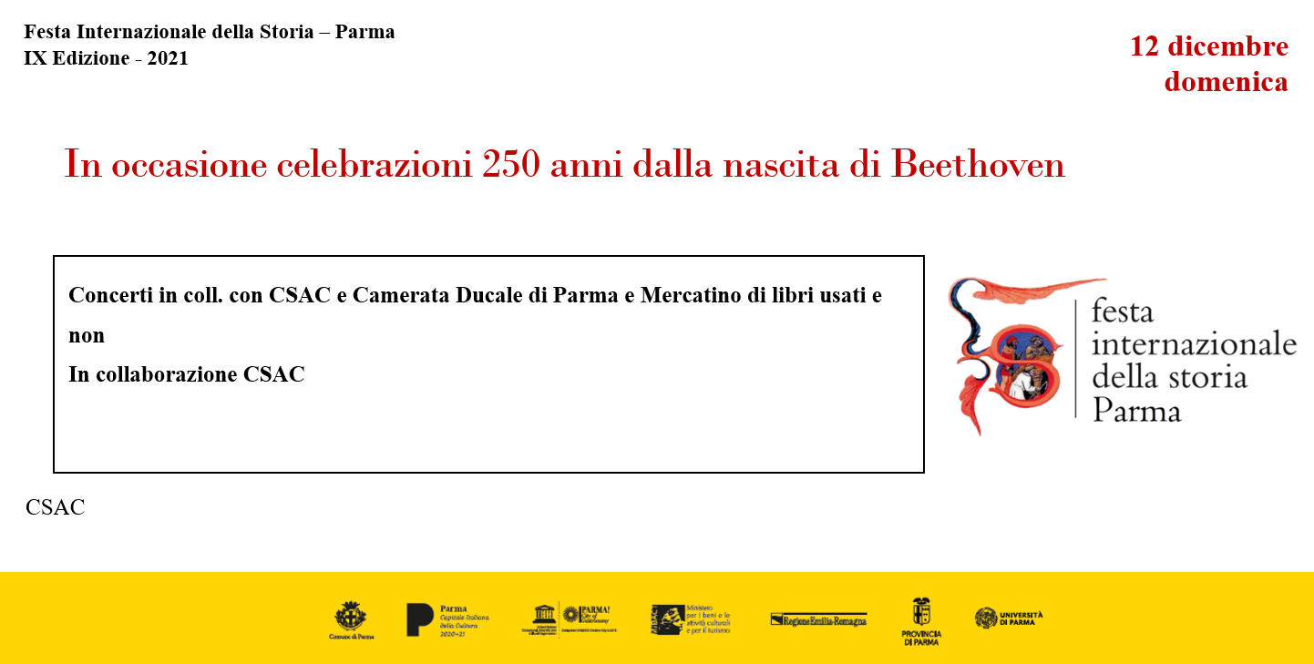 Concerti in coll. con CSAC e Camerata Ducale di Parma e Mercatino di libri usati e non 12 dicembre domenica