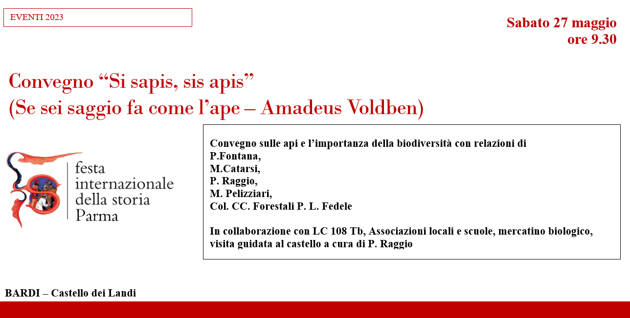 (Se sei saggio fa come l’ape – Amadeus Voldben) LOCANDINA Convegno sulle api e l’importanza della biodiversità con relazioni di P.Fontana, M.Catarsi, P. Raggio, M. Pelizziari, Col. CC. Forestali P. L. Fedele In coll. con LC 108 Tb, Associazioni locali