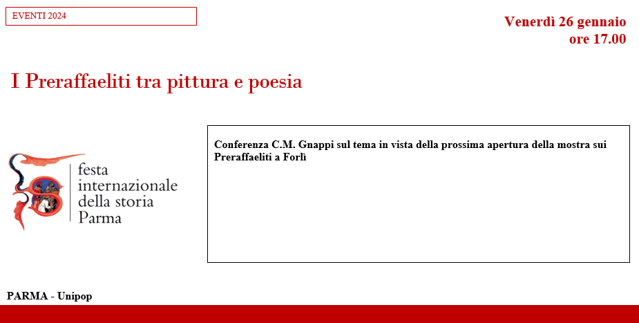 Conferenza C.M. Gnappi sul tema in vista della prossima apertura della mostra sui Preraffaeliti a Forlì