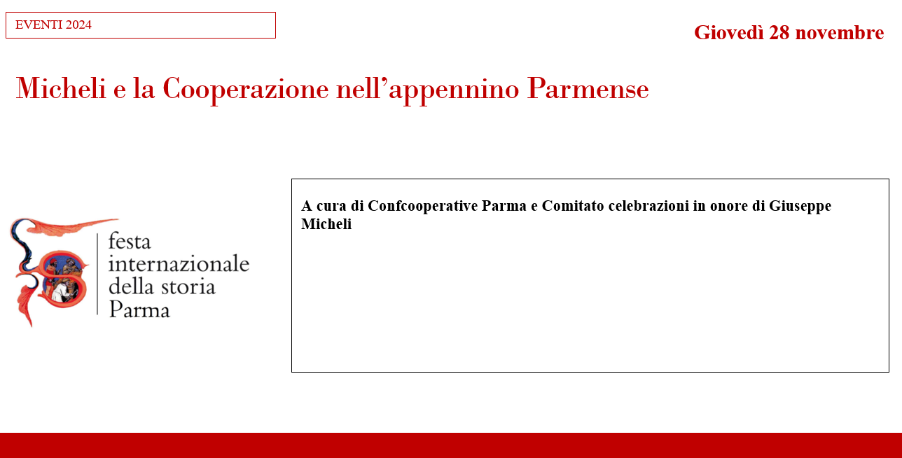A cura di Confcooperative Parma e Comitato celebrazioni in onore di Giuseppe Micheli
