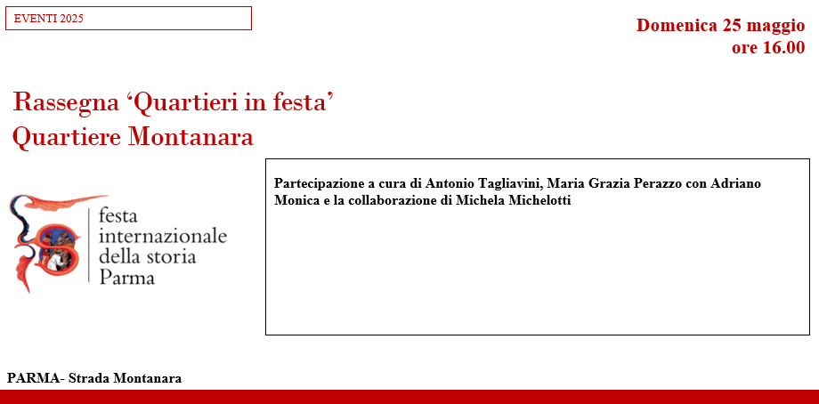 L’ associazione Festa internazionale della storia-Parma sarà presente con il proprio gazebo lungo via Montanara per raccontarvi la storia del quartiere (ore 10 -20)