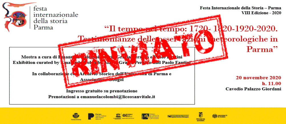 “Il tempo nel tempo: 1720- 1820-1920-2020. Testimonianze delle osservazioni meteorologiche in Parma”